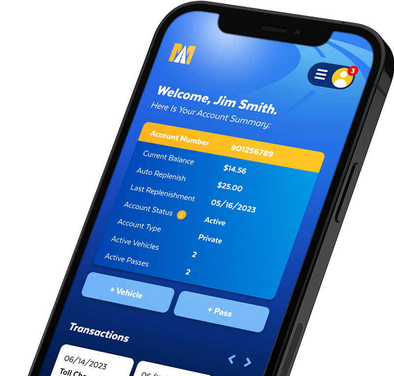 Pay the State of Mojo’s lowest toll rates, set up automatic payments and earn rewards through the MPASS Mobile App